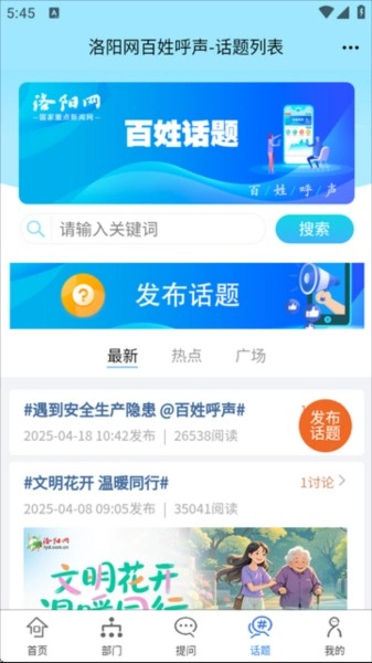 4、话题列表中可以查看所有的话题,支持根据关键词搜索。