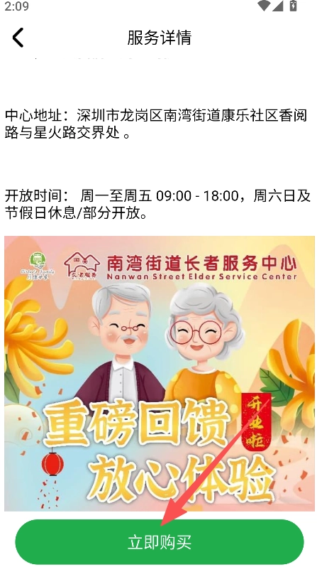 支持服务项目的抢购购买操作,完成长者相关服务的消费流程。