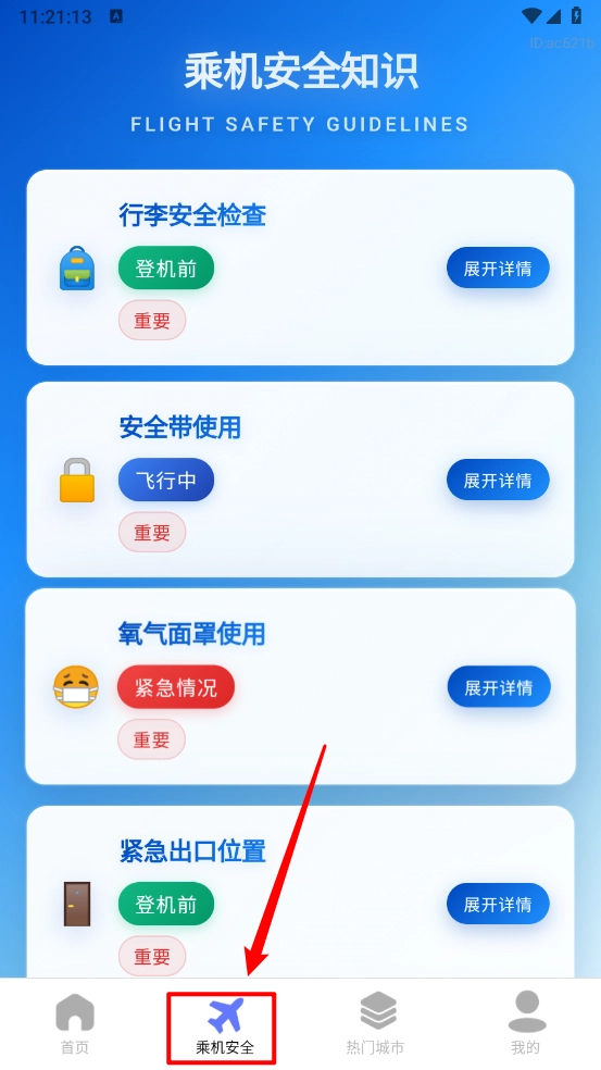 切换到“城际安全”板块,就能查看对应的安全知识。