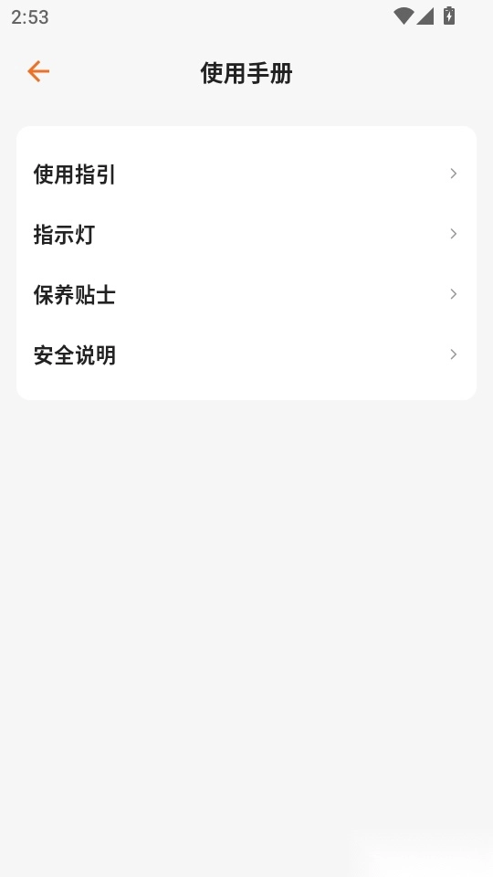 之后进入“使用手册”的详情菜单选项界面,点击“使用指引”按钮,即可进入下一步操作。