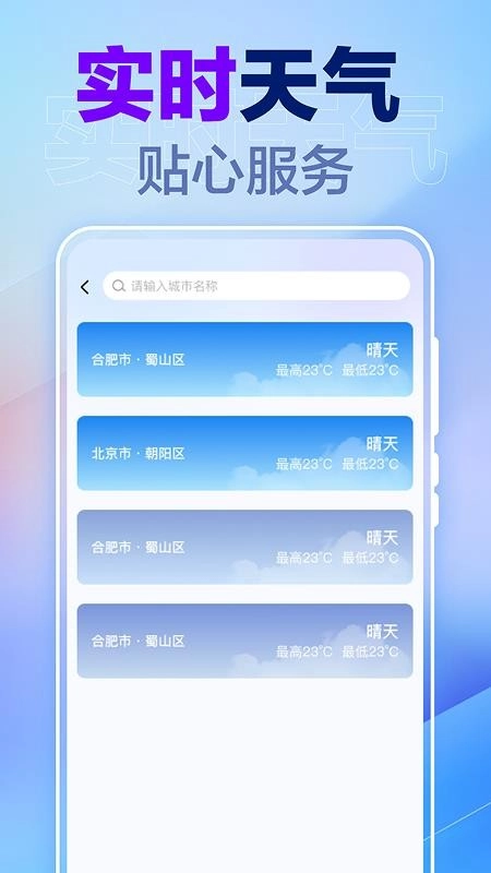 展示了当前城市的实时天气预报,用户可以查看最新的天气变化,轻松掌握相关的天气。
