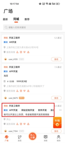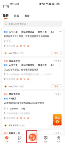 个人用户发布自身需求后,能够迅速找到合适的人来为自己办事。