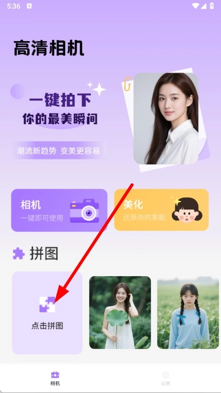 在高清相机界面,点击拼图功能,即可跳转至图片选择页面。