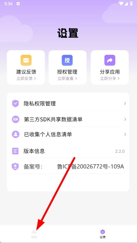 要开启照相机的高清功能,可先进入设置页面,点击页面底部的相机选项,随后就能进入高清相机的功能页面。