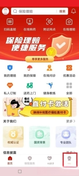 安诺保页面,点击选择右下角我的。