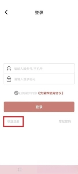 选择快速注册信息,使用该信息登录账号。