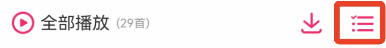 1、进入歌单,在【全部播放】的右边也会有一个图标。