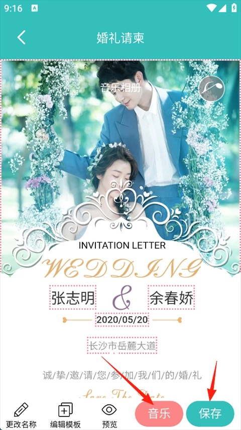 6.点击左下角“音乐”,选择自己喜欢的音乐,随后点击“保存”就可以了。