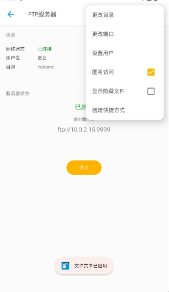3、点击开始即可启用局域网服务器,随时可以点击停止按钮终止