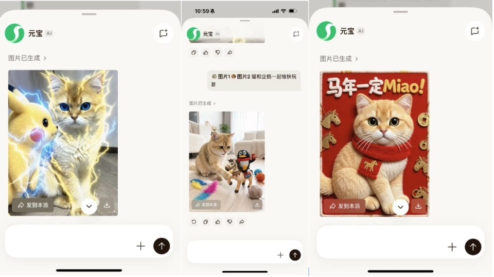 如果说@元宝是“元宝派”的“大脑”,那么图片二创功能就是它的“四肢”——创造力和乐趣的源泉。将AI生成的多模态与社交结合,得到了淋漓尽致的体现。