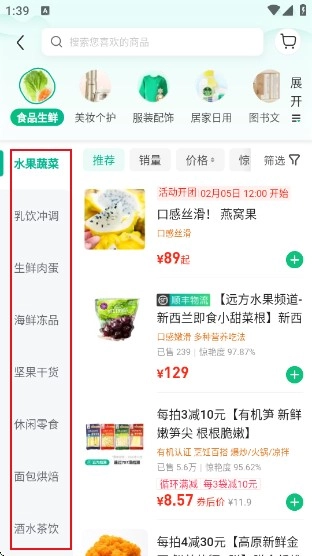 4、如需购买农产品或日用品即可通过分类进行商品购买。