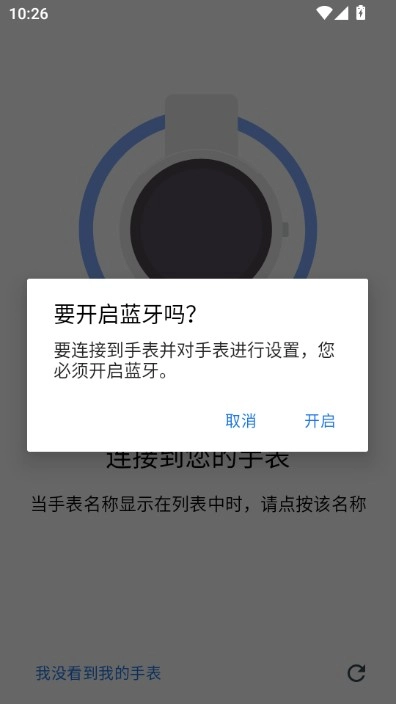 4.系统提示需要开启蓝牙才能连接手表,点击“开启”以激活手机蓝牙功能。