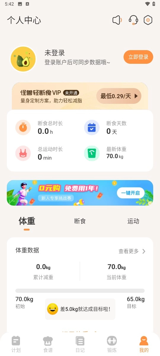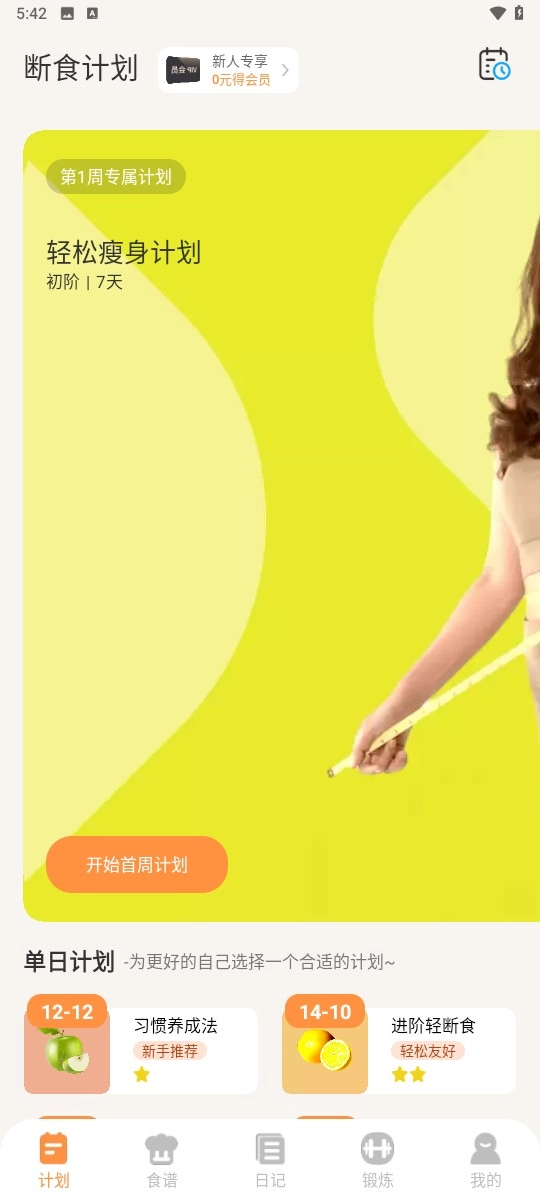 进入首页,在这里可以指定瘦身计划