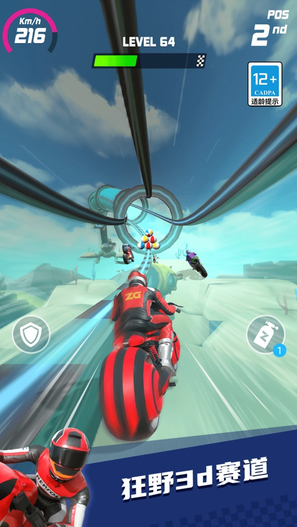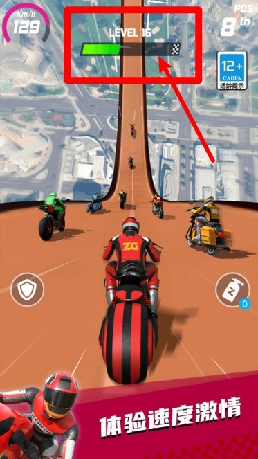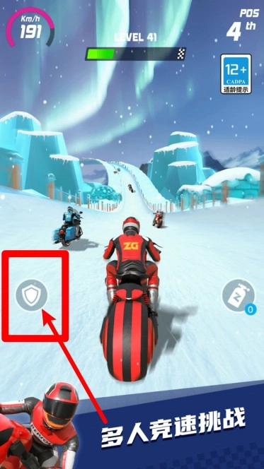 点击加速道具图标,能让摩托瞬间提速;在直线赛道疾驰或超车的紧要关头使用,可快速拉开与对手的距离,从而占据优势。