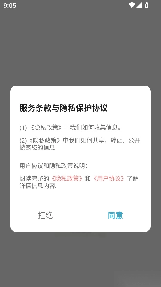 首先打开软件,阅读条款与隐私保护协议后,点击“同意”按钮即可进入程序
