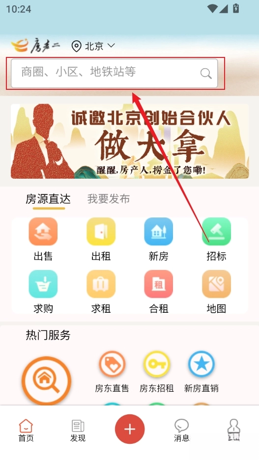 也可以在搜索框中输入商圈、小区、地铁站名称等关键词来查找房源。
