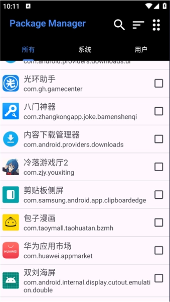 package manager应用管理器是一款用于管理应用包的工具软件,它能直接帮你快速定位手机里的所有应用,并对这些应用进行统一管理,涵盖安卓设备上已安装的系统应用与用户自行安装的应用程序。通过这款软件,你可以直接查看各应用的详细信息,以及它们对各种权限的使用情况,能满足不同场景下的功能需求。软件界面设计简洁明了,引导操作也简单易懂,让用户能够轻松上手,感兴趣的话快来体验看看吧。
