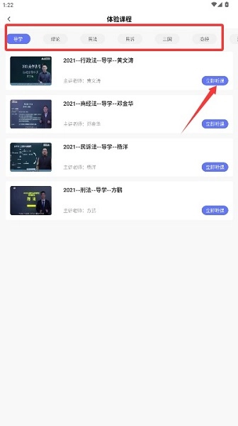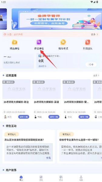 进入应用首页后,点击“体验课程”功能选项,即可进入免费课程内容的浏览页面。
