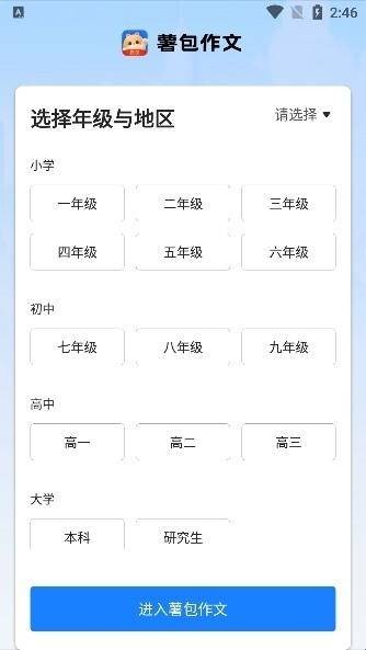1、在本站安装薯包作文并打开软件,先选择对应的年级。