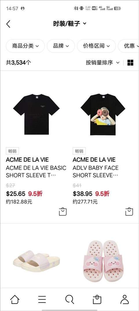 然后点击左下角的“三”按钮,用户就能选择想要购买商品的分类,像时装、鞋子这类都可以选。