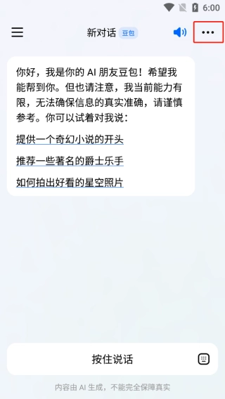4、在新对话页面点击右上方三个点