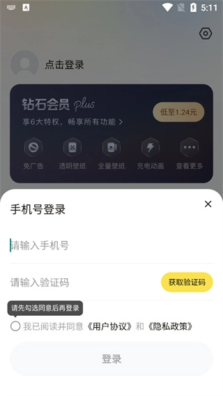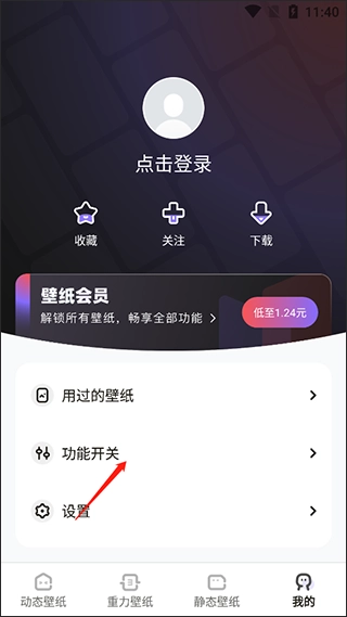 双击打开大众动态壁纸后,点击我的页面进行登录;