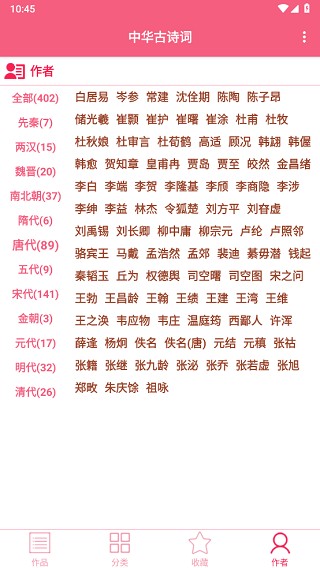 6、作者:还可以根据自己喜欢的作者来找诗词