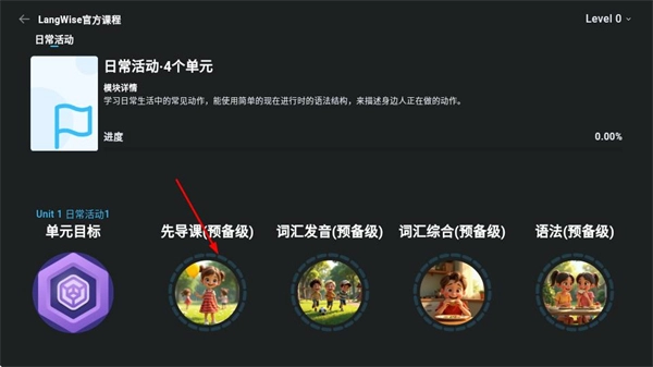 在单元页面点击先导课选项时,若用户尚未登录,系统会弹出账号登录的弹窗。