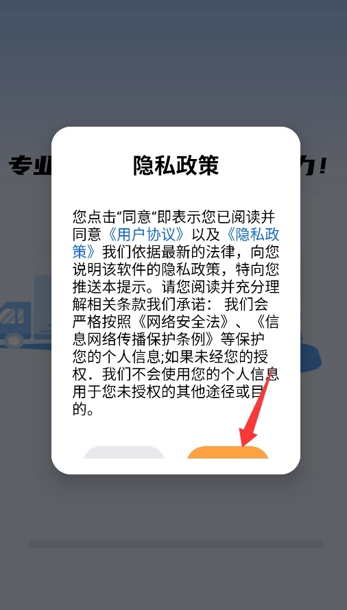 当应用启动时会弹出隐私政策窗口,用户需要点击同意按钮,之后才能成功进入登录界面。