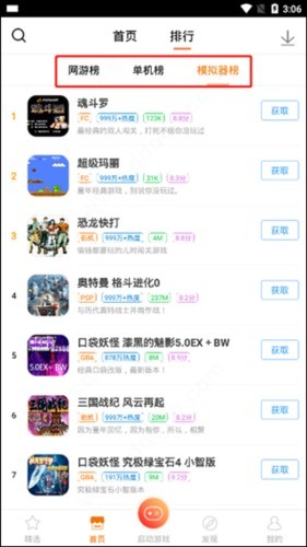 2、同时还罗列了网游榜、单机榜、模拟器榜。