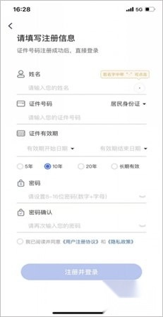 按照提示填写身份信息与密码,确认勾选“已阅读并同意相关协议”后,点击“注册并登录”按钮即可。
