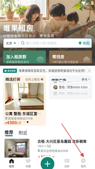 在唯果租房的首页,点击底部的“我的”选项,即可进入个人中心页面。