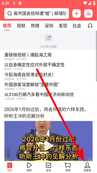 打开今日头条应用,进入主界面后,找到底部导航栏中的“未登录”选项并点击,即可进入登录相关页面。