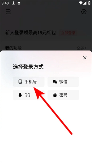 在登录方式选择页面,点击“手机号”选项,即可进入手机号码登录的信息填写界面。