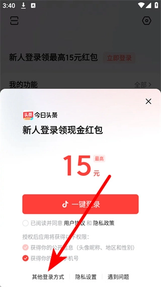 页面弹出弹窗后,先勾选相关协议,再点击弹窗中的其他登录方式。