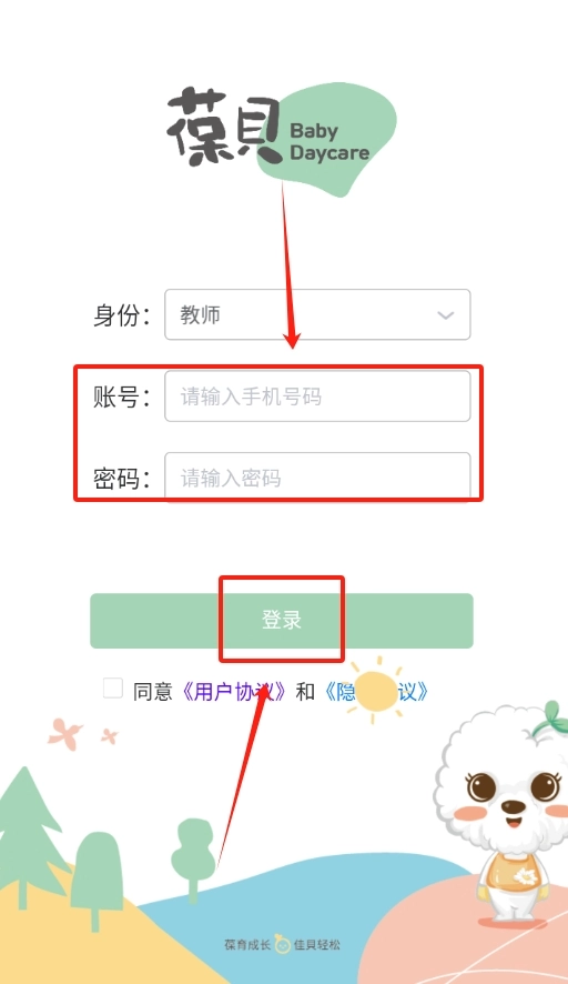 在手机应用商店搜索并葆贝托育,安装完成后使用手机号注册账号并登录个人中心面板。