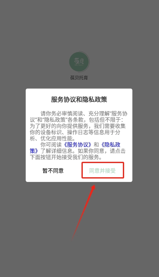 打开软件后,需先在弹出的页面上点击同意软件协议,方可继续使用。