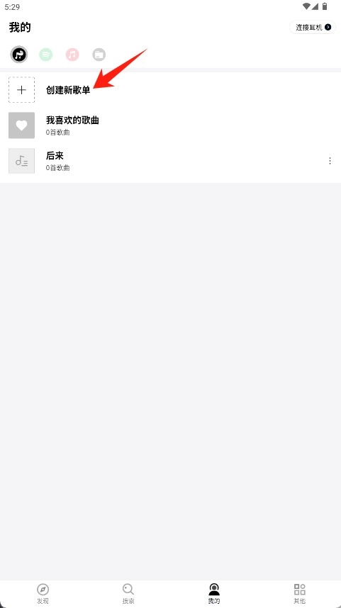 1、在“我的”界面点击顶部“创建新歌单”按钮。