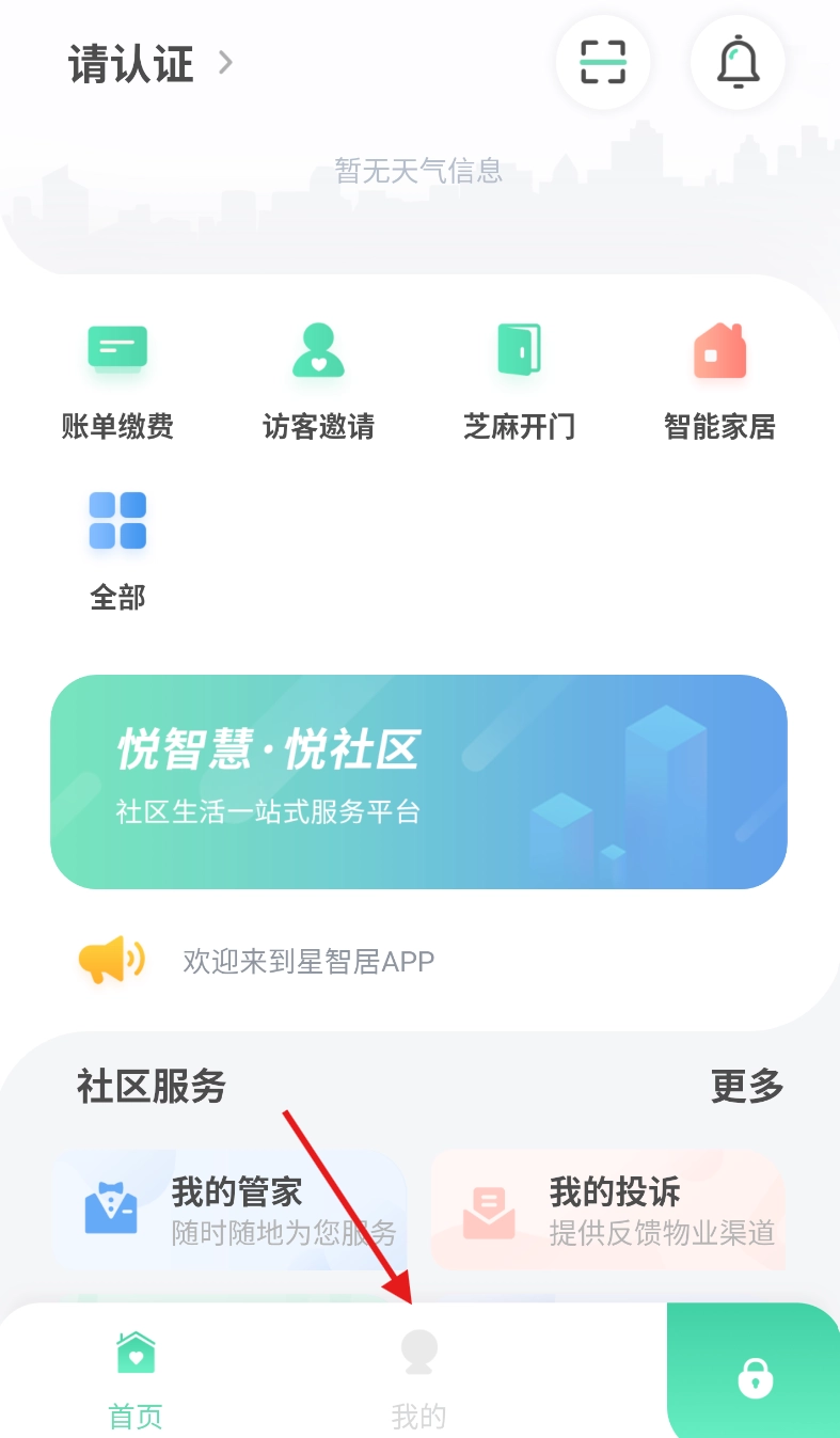 打开星智居应用后,在主页面的底部区域找到“我的”选项,点击该选项即可进入与个人相关的界面。