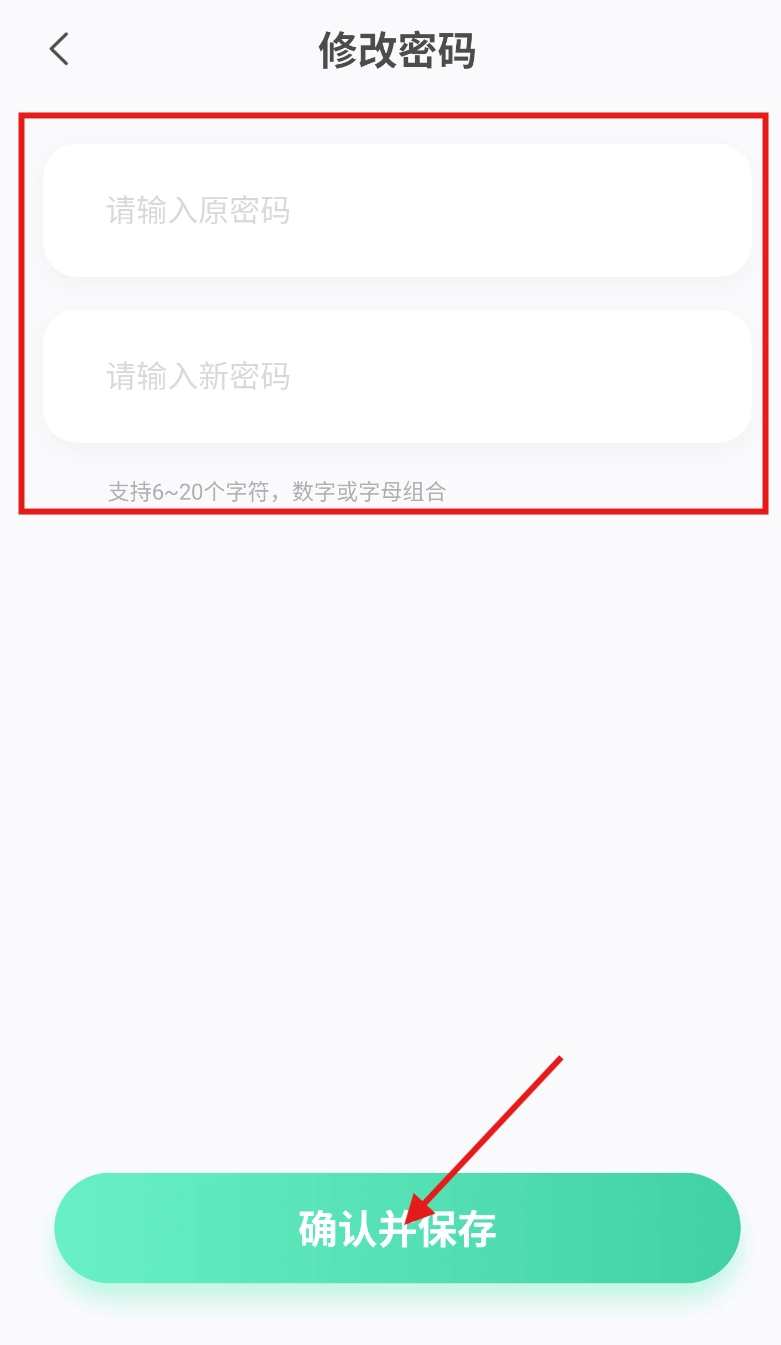 进入密码修改页面后,先输入新密码,接着再次输入进行确认,认真检查确保两次输入完全一致后,点击“保存”按钮即可完成密码修改操作。