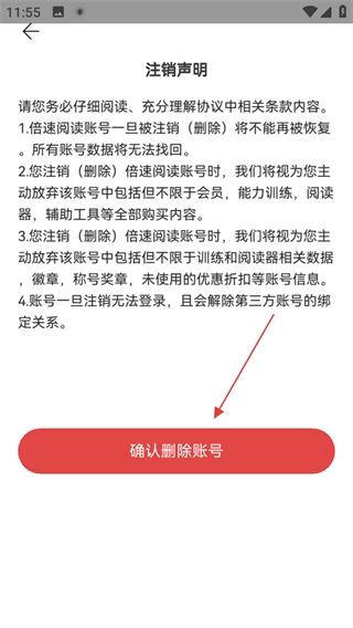 在注销声明页面,点击确认删除账号,即可完成账号注销操作。