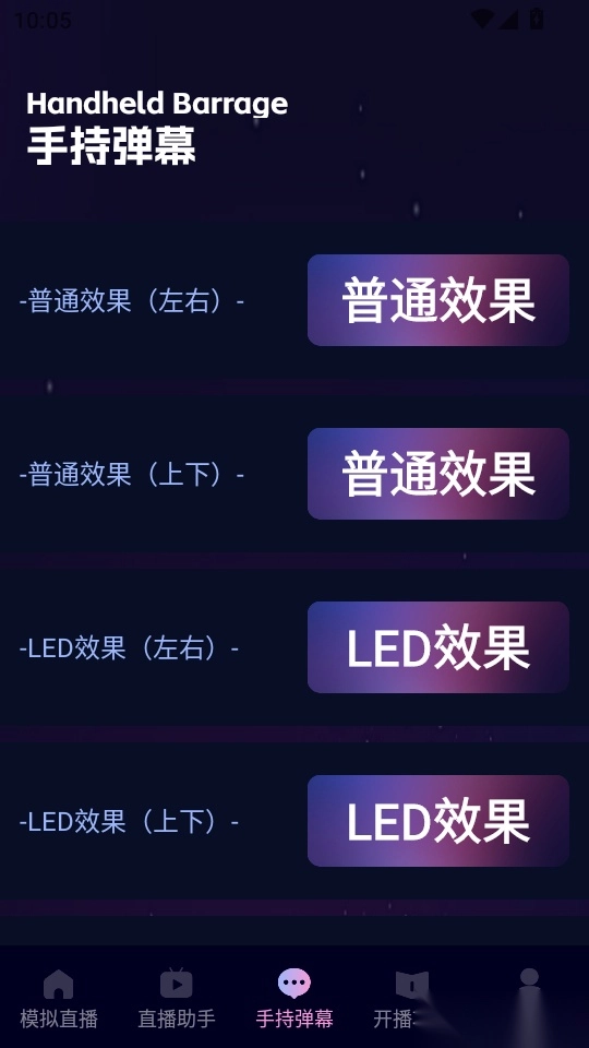 在“手持弹幕”的功能菜单界面里,找到“普通特效”按钮并点击进入该功能。