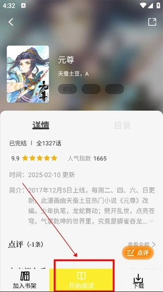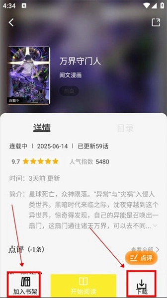 4.要是对这部作品感兴趣,还可以将其添加至书架,或是下载到本地进行离线阅读。