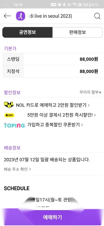 5、点击购买예매하기,