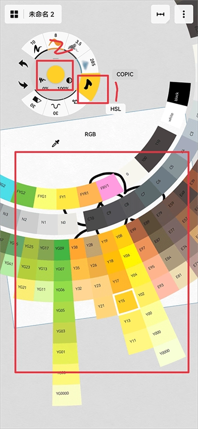 在绘画界面里,先点击左上角工具栏中的填充工具,点击之后再点击中间的圆心来挑选颜色。
