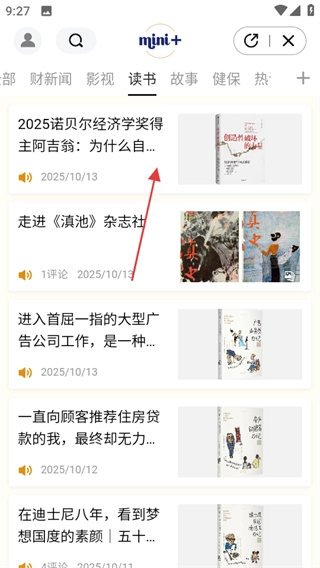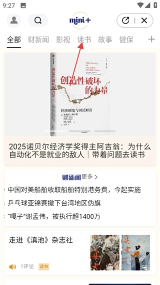 在mini+页面,挑选你想要阅读的内容,比如读书,然后点击进入读书板块。