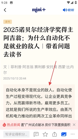 在读书板块,挑选你感兴趣的文章,点击即可进入文章详情页面。