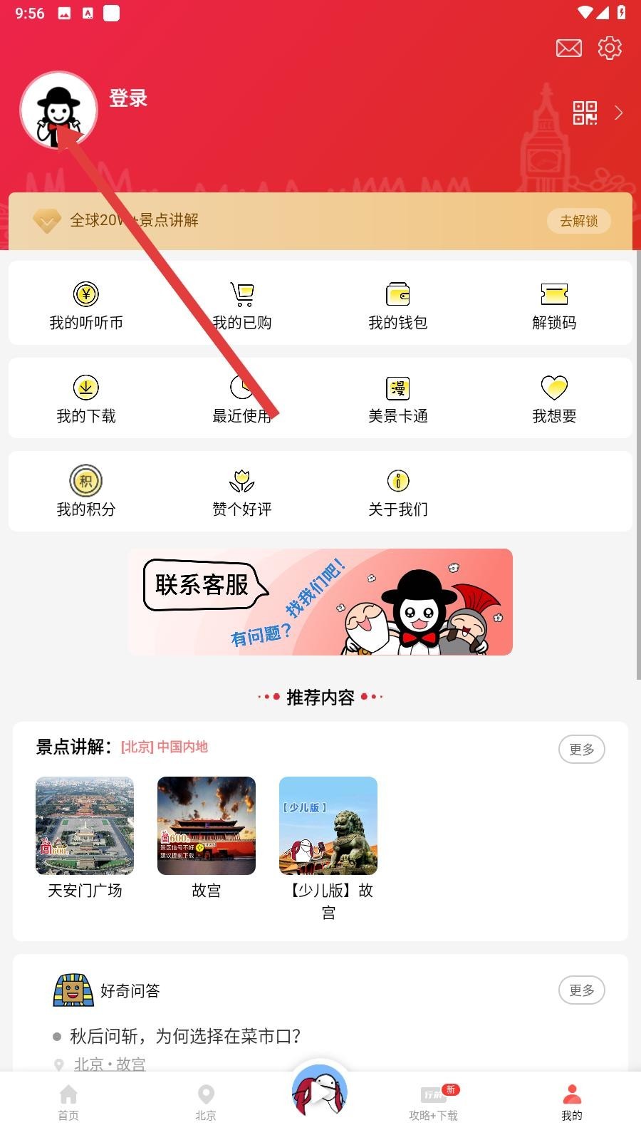 1、复制邮件内的解锁码或订单详情的券号,打开“美景听听”,点击“我的”再点击“解锁码”;
