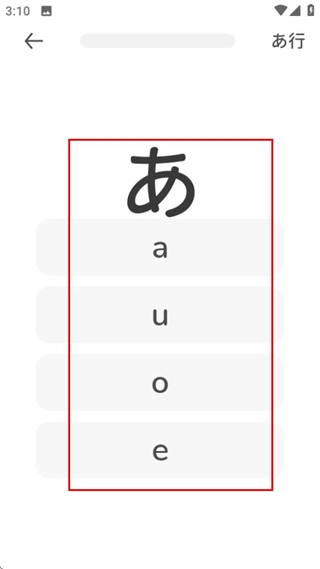 在练习页面,依据所显示的假名,挑选对应的读音选项来继续进行练习。