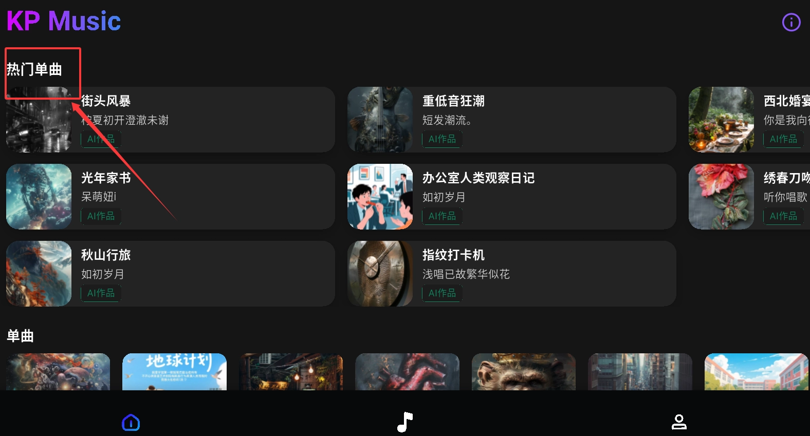 KP音乐是一款能帮你轻松写歌的工具,当你脑海里闪过不错的歌词或旋律灵感时,只需把这些想法输入进去,它就能自动为你生成一首完整的歌曲。无论是流行、摇滚还是民谣风格,你都可以随意选择,歌曲的节奏快慢也能根据你的喜好进行调整,最终制作出的作品绝对符合你想要的风格。它的操作方式特别简单,就算是音乐小白也能立刻上手,从此再也不用因为不会演奏乐器而发愁无法创作音乐了。